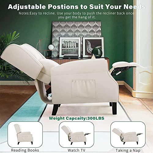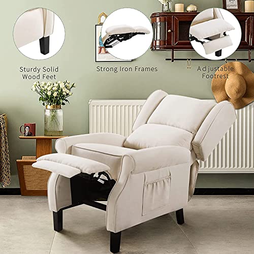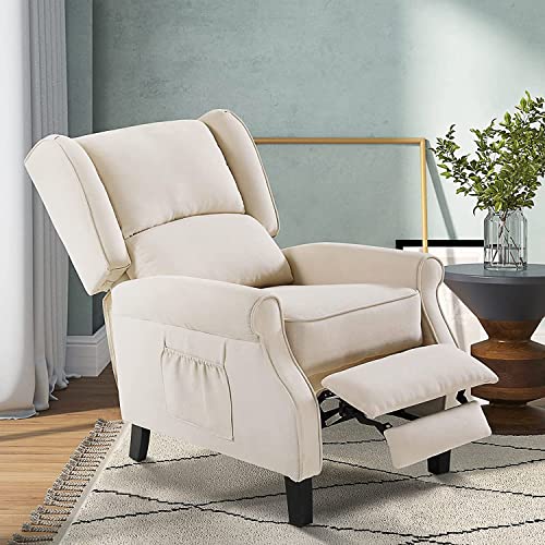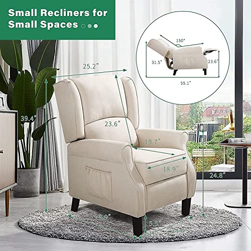 LEISLAND Wingback Recliner Chair for Living Room, Fabric Recliner Chair with Heat and Massage, Tufted Armchair for Reading and Napping,Beige