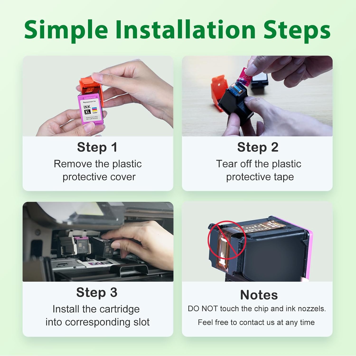 63XL Replacement for HP Ink 63 XL 63XL Ink Cartridges Combo Pack Black and Color Compatible with HP Envy 4520 OfficeJet 3830 4650 5255 5258 DeskJet 3630 Printer Ink Cartridges