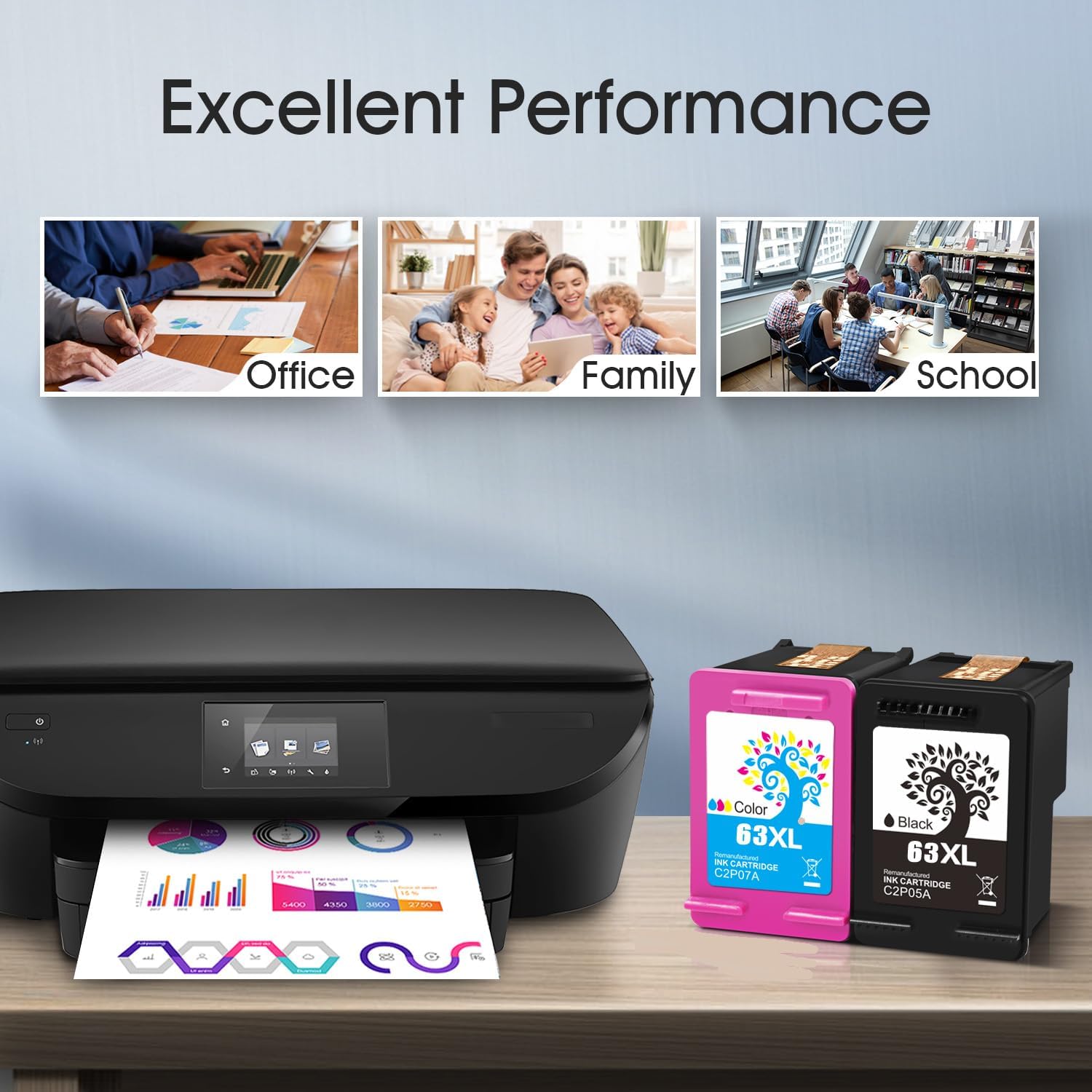 63XL Ink Cartridge Combo Pack Remanufactured for HP 63 63XL Black and Color for HP Officejet 3830 4650 5255 5258 5200 4652 4655 Envy 4520 4512 DeskJet 2130 2132 Printer (Black and Tri-Color)