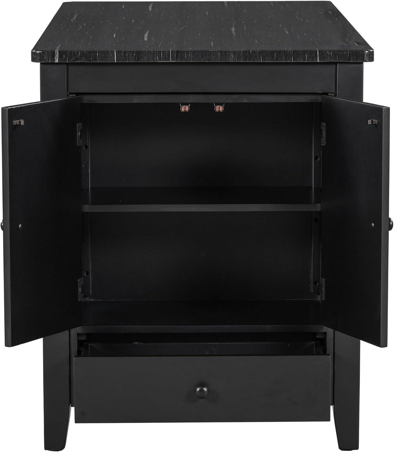 Counter Height 5-piece Dining Faux Marble Tabletop, Solid Wood Table Set with Storage Cabinet and Drawer, Black