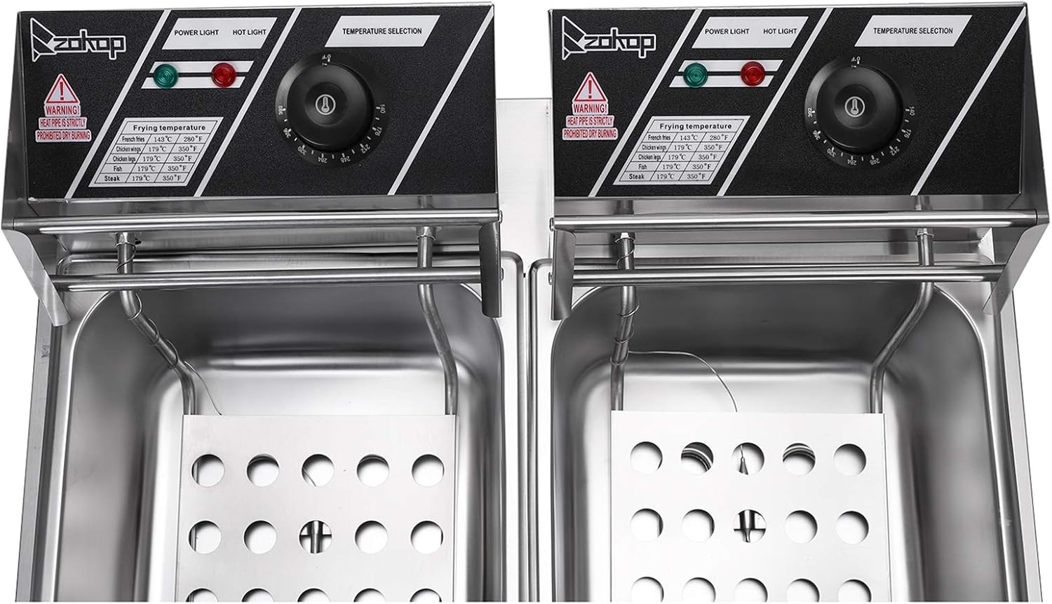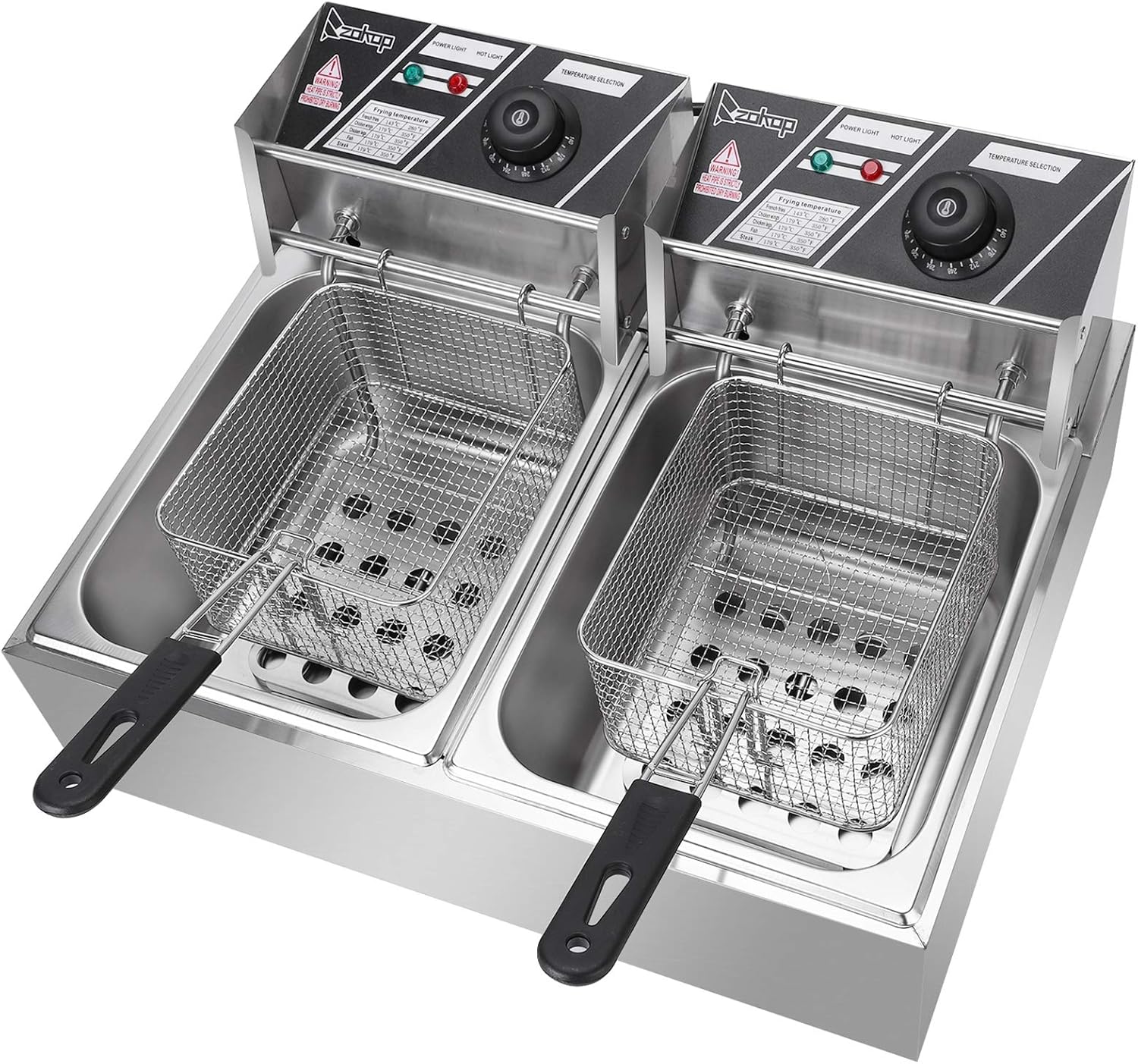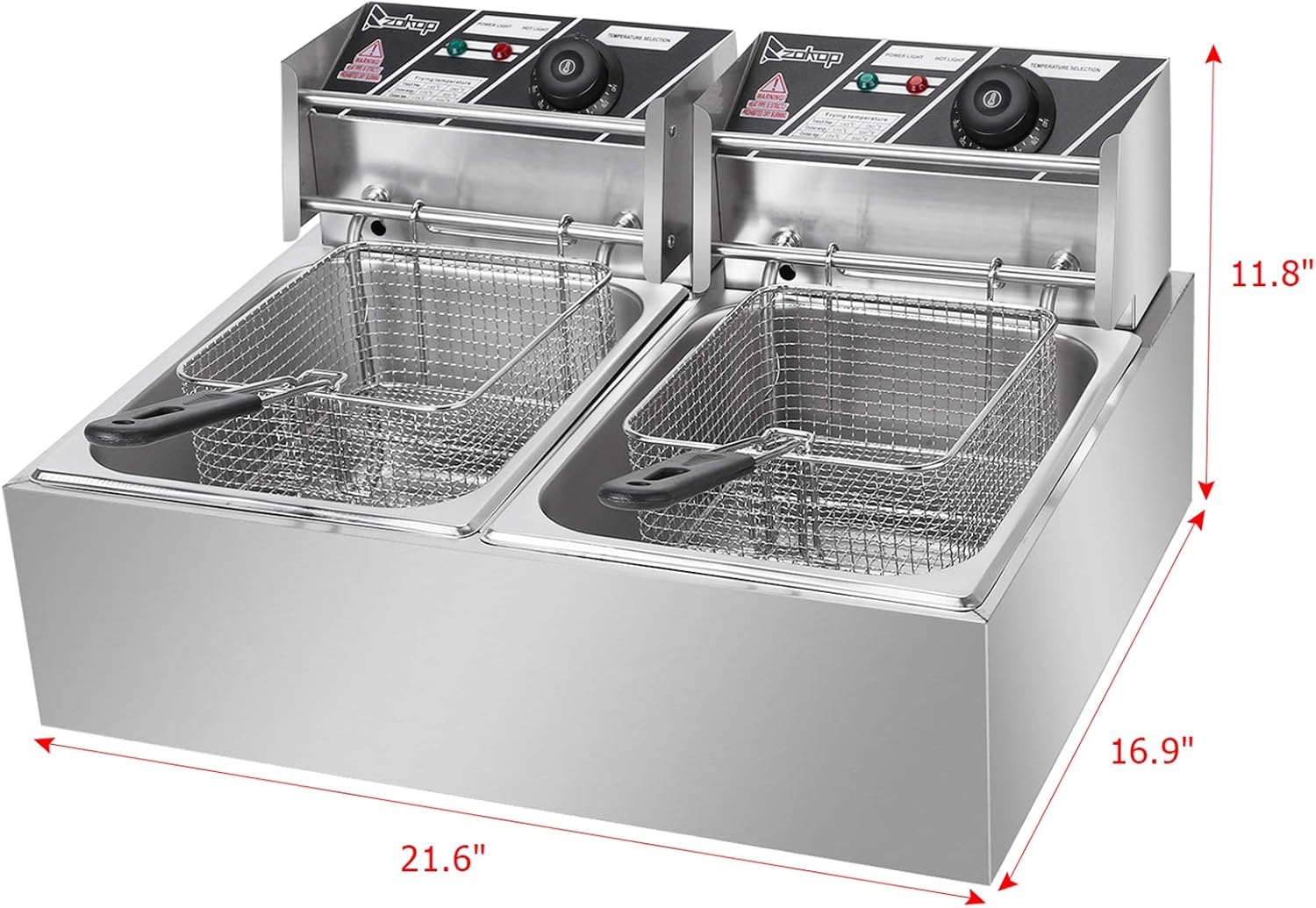 Heavy Duty Stainless Steel Deep Fryer, With Basket, 12 Liter Oil Capacity, Electric, 2Pack