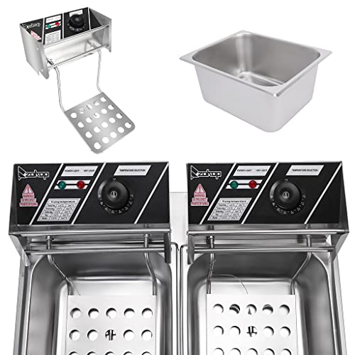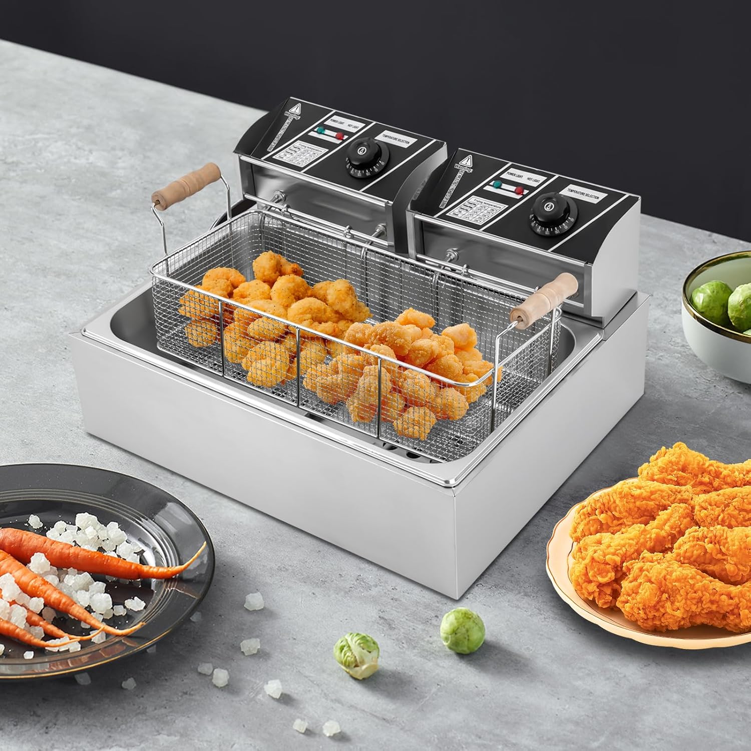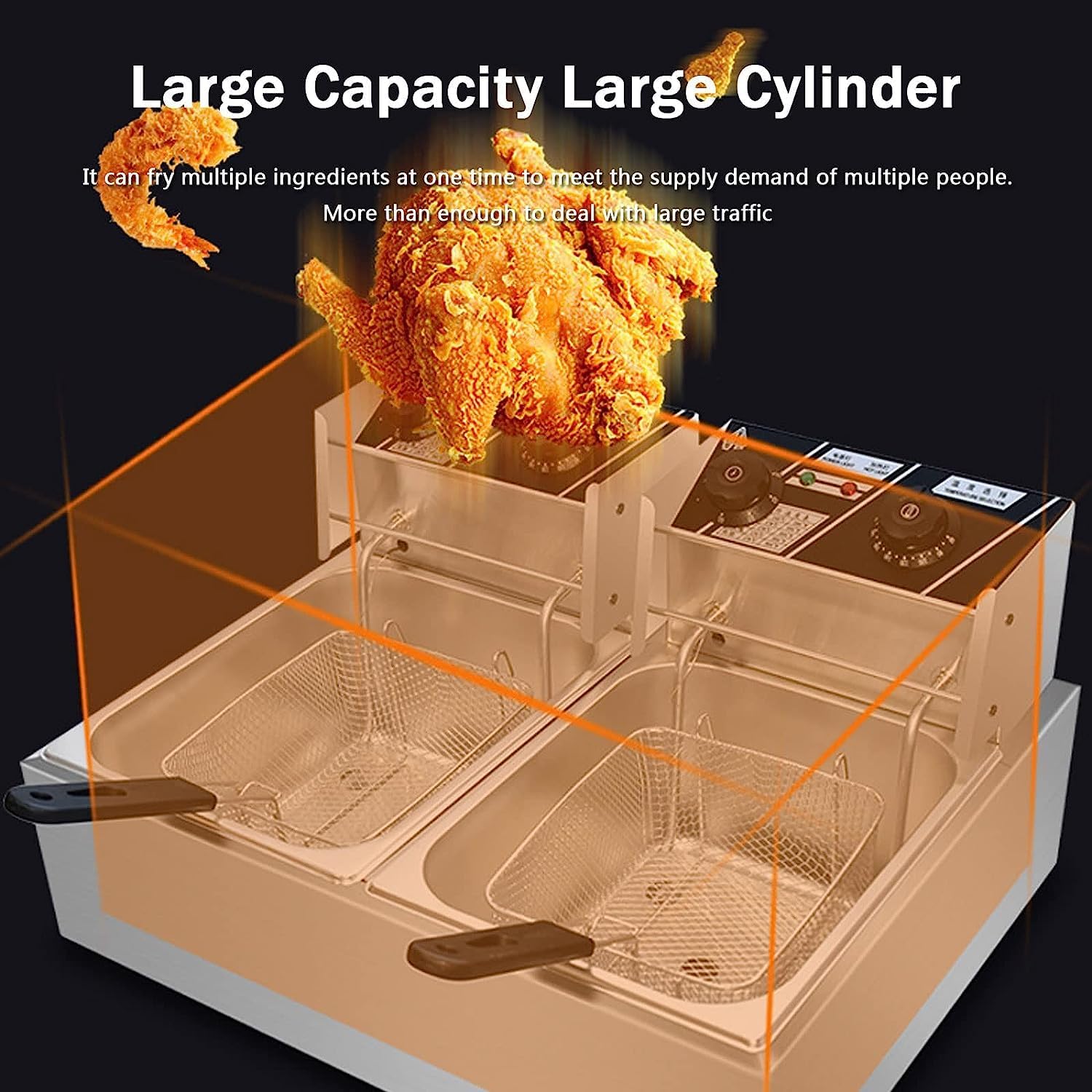 12 Liter Commercial Deep Fryer Electric Countertop Stainless Steel Dual Tank fryers with Basket and Lid Turkey French Fries Tool for Kitchen,Home and Restaurant 3400W