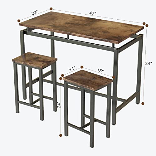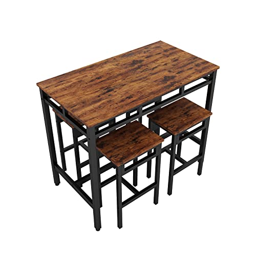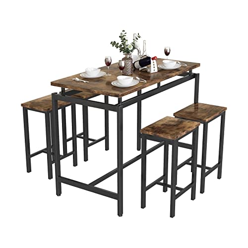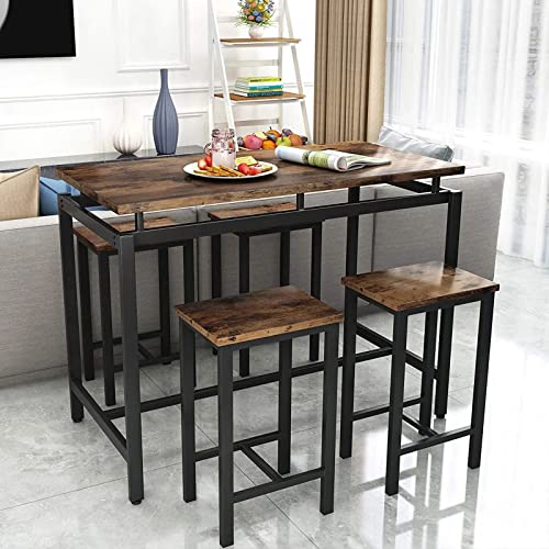 Bar Table Set 5pc, Farmhouse Kitchen Table and Chairs Set High Top Dining Table with 4 High Stools Dining Table Set for 4 for Small Places, Home, Kitchen-Rustic Brown