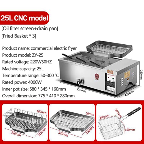 Electric Deep Fryer with Basket Stainless Steel 12 Liters 25 Liters Oil Fryer, Deep Fryer Stainless Steel Tank Chip Fryers for Home Commercial, Electric Fryer for French Chicken Shrimp,25L,s