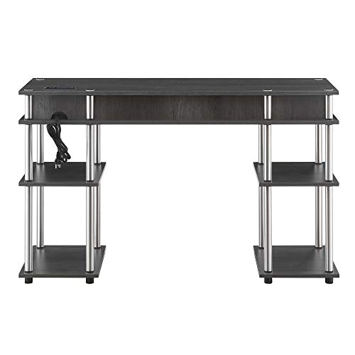 Convenience Concepts Designs2Go Tools Student Desk with Charging Station and Shelves, 47.25" L x 15.75" W x 30" H, White