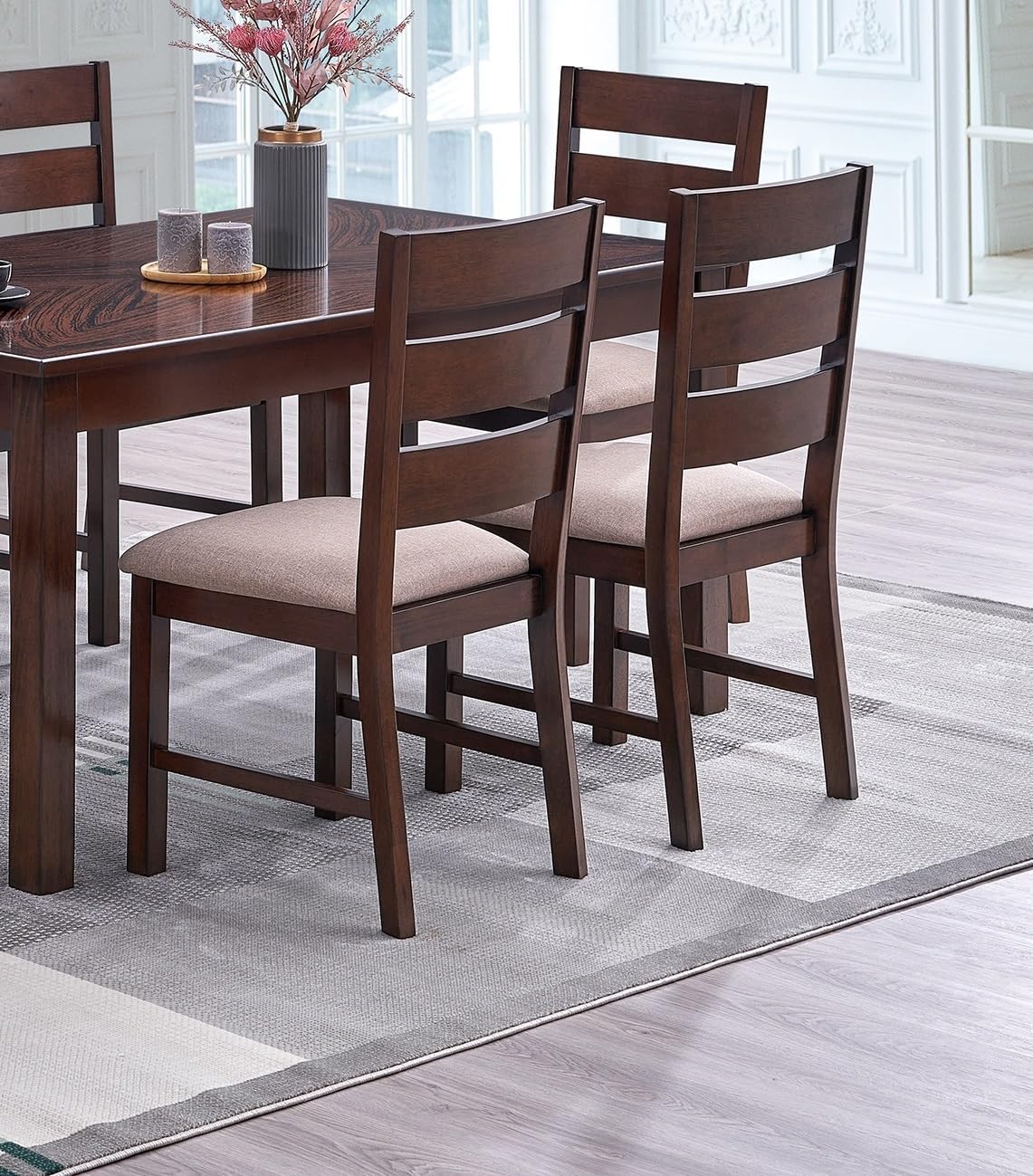 Contemporary Antique Cherry 7pc Dining Set Table and 6X Side Chairs Melamine Table Top Fabric Cushion Seats Chairs Solid wood Dining Room Furniture