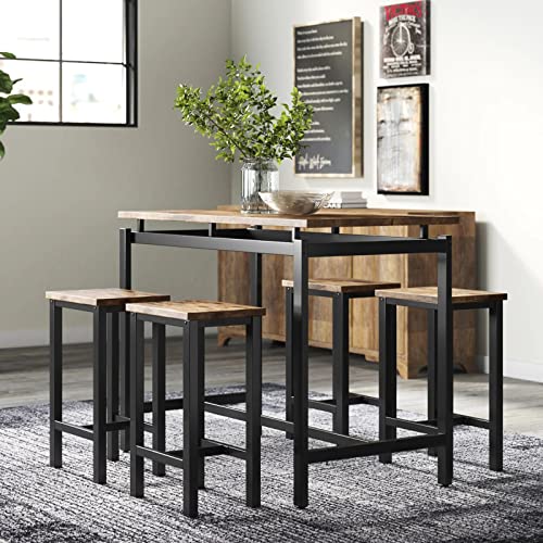 Dining Table Set for 4, 5 Pieces Bar Table Set Modern Kitchen Table and Chairs Industrial Height Pub Table with 4 Chairs, Dining Room Table and Chairs for Small Space, Breakfast Nook