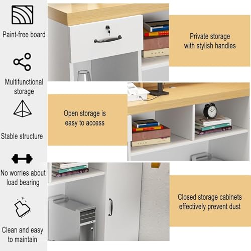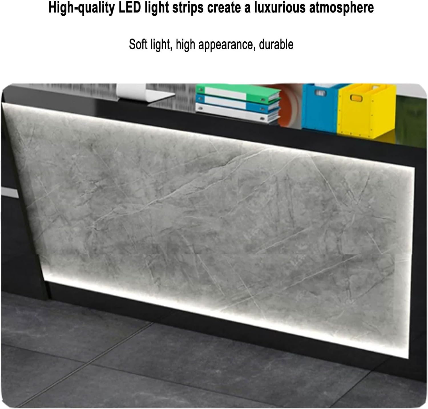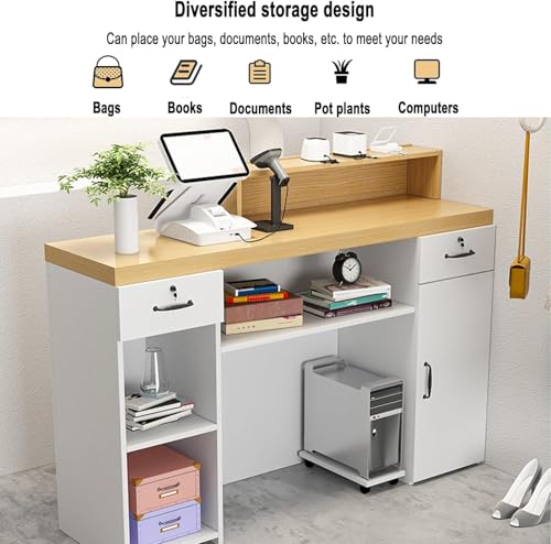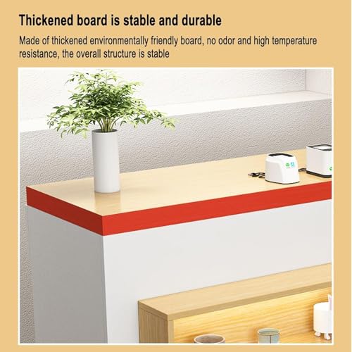 L-Shap front office reception desk with storage platform, LED-lit retail reception counter, Wooden reception desk for beauty salon, standing Retail Counter for Checkout, suitable for shops, offices(G-