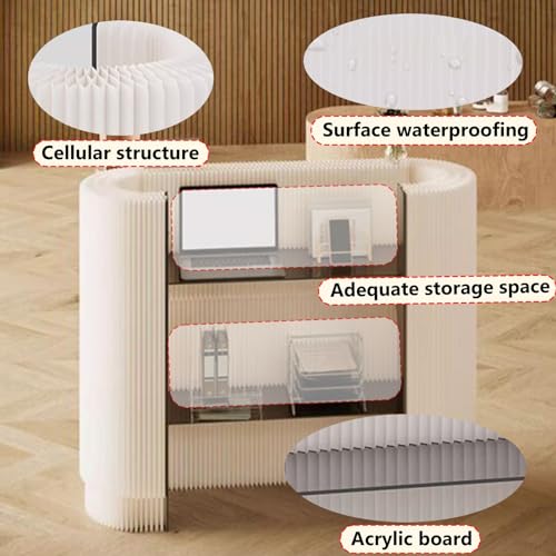 Reception Desk with Counter Foldable Storage Reception Desk, Multifunctional Kraft Paper Double-Layer Standing Front Table(Black)