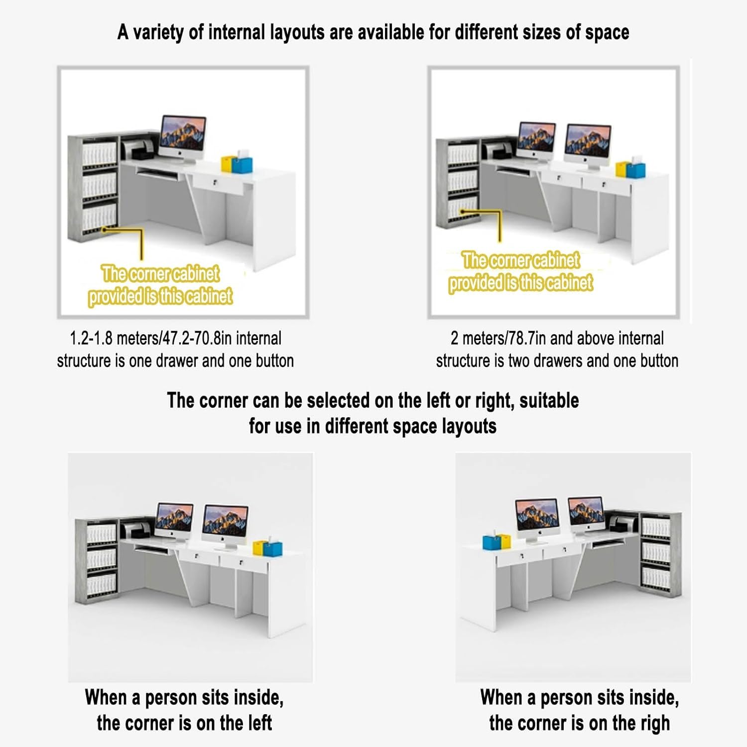 L-shaped Modern Reception Counter Standing Reception Desk with Storage Space Mostradores for Negocio Double-top Front Desk