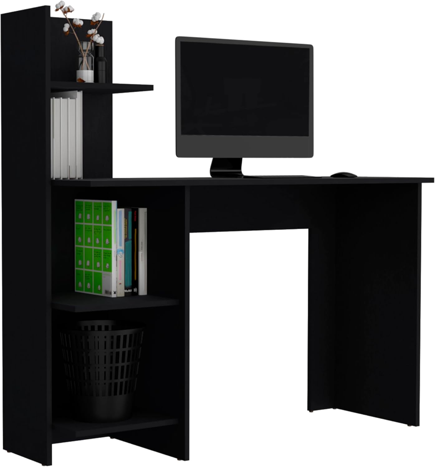 DEPOT E-SHOP Toronto 120 Black Writing Desk, 47 Inch Wide, Four Shelves, Modern Design