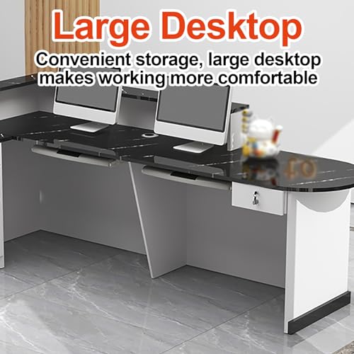 Reception Desk, Office Reception Counter Desk with Lockable Drawers, Wooden Front Desk Reception, Standing Retail Checkout Counter Table(Black Texture,31.4"x17.7"x35.4")