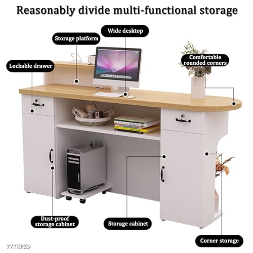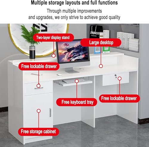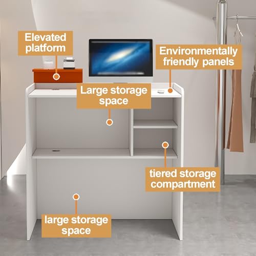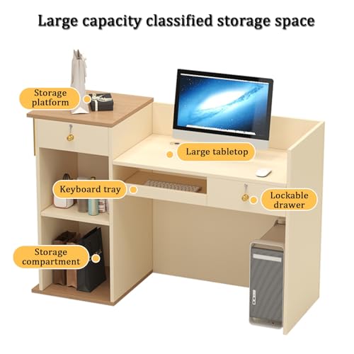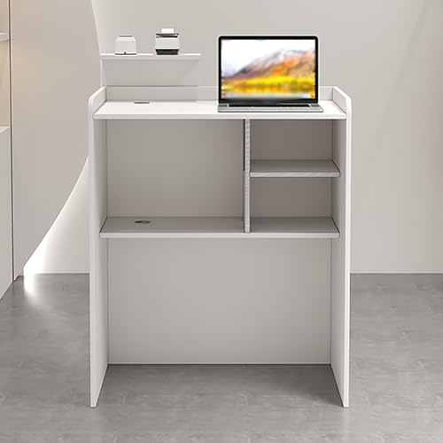 Reception Counter Desk, Multifunctional Standing Front Desk, Checkout Counter, Wooden Office Computer Desk Reception Table, Reception Room Table With Storage, For Home Salon Spas Lobby (B 100x85x45cm)