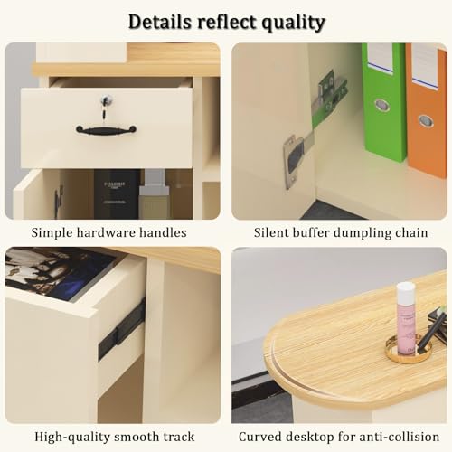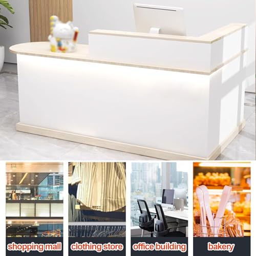 Modern Reception Counter Desk with Lights & Lockable Drawers, L-Shap Checkout Counter, Wooden Computer Desk Reception Table, Small Reception Desk, for Checkout Office/Beauty Salon/Lobby (Color : D,