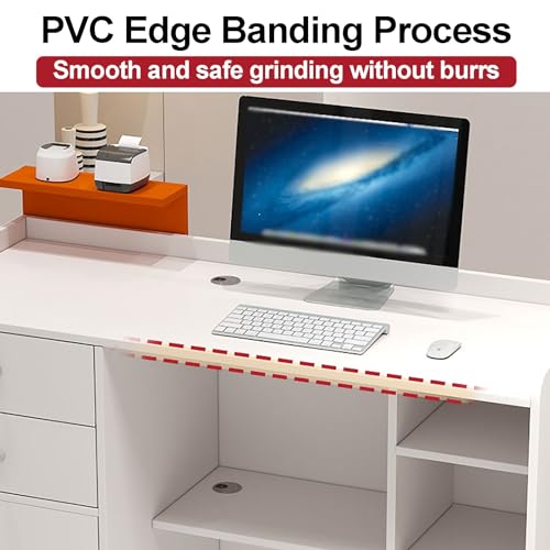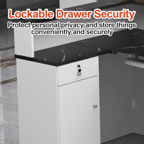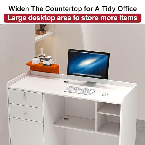 Reception Desk, Standing Front Desk Reception, Reception Counter Desk with LED Lights and Lockable Drawers, Retail Counter Table for Shops and Businesses(White R,51.1"x19.6"x41.3")