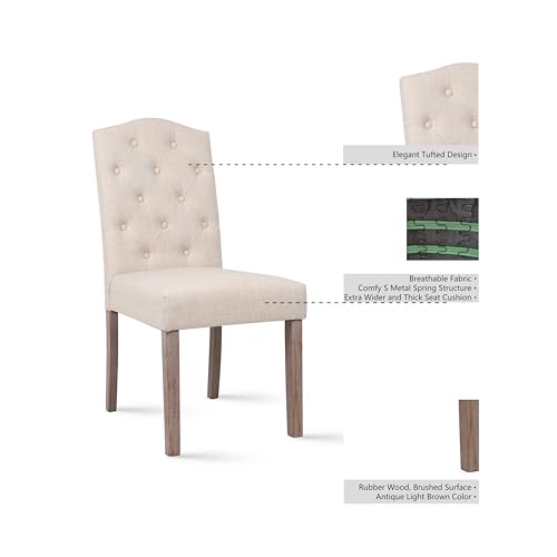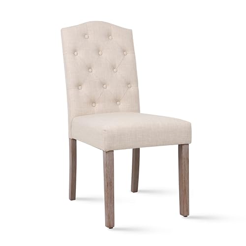 DrInn Morden Farmhouse Linen tufted Upholstered Dining Chairs 19", set of 2, beige (beige)