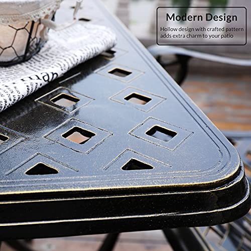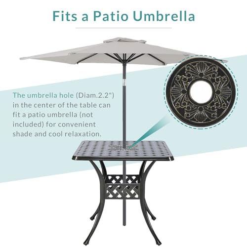 MEETWARM 38.5" Round Patio Dinning Table, Outdoor Cast Aluminum Dinning Table with 2" Umbrella Hole, Dark Bronze