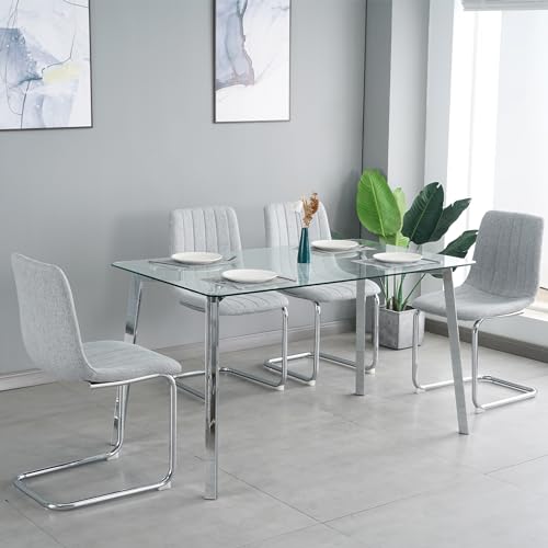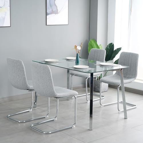 Modern Dining Chairs Set of 4/8, Modern Simple Light Luxury Dining Chair with Silver Metal Chrome Legs and Upholstered Seat, Dining Chairs for Kitchen Dining Room ( Color : Blue , Size : Set of 4 )