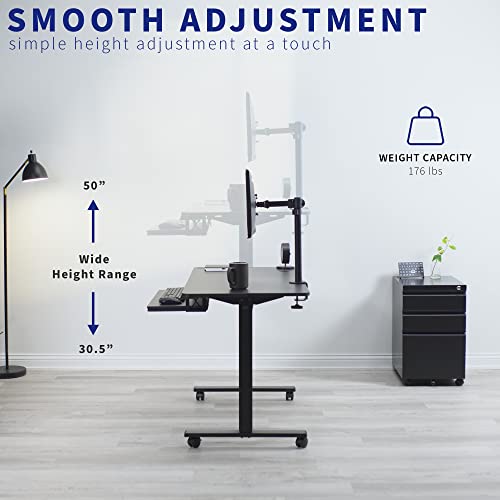 VIVO Electric Height Adjustable 60 x 24 inch Mobile Stand Up Desk, Complete Active Workstation with 2 Section Black Table Top, Black Frame, Keyboard Tray, 2 Accessory Hooks, DESK-E-P60KB