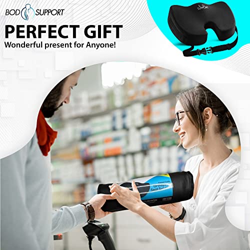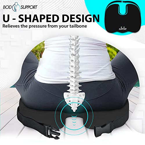 Seat Cushions for Office Chairs, Desk Chairs, and Car Seats - Enhances Posture and Support - Non-Slip Ergonomic Design with Adjustable Straps - Sciatica and Tailbone Relief (Black)
