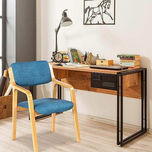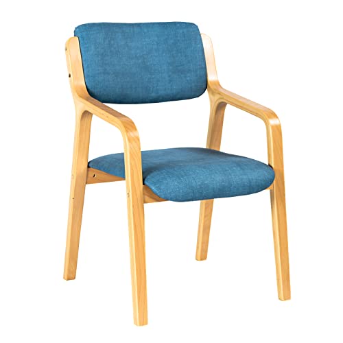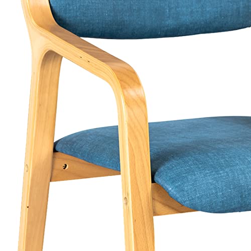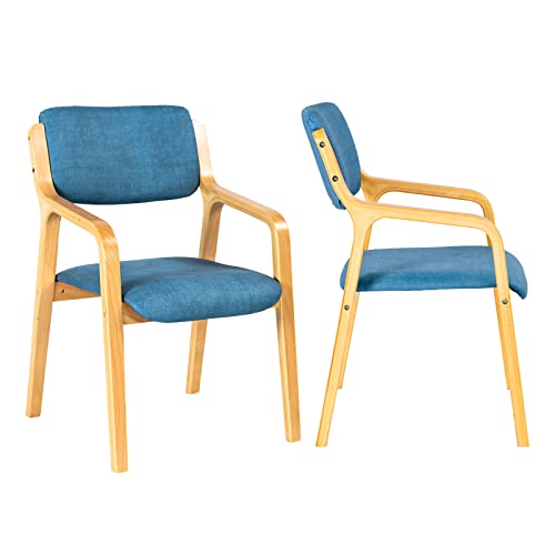 CLATINA Dining Chairs, Mid-Century Modern Dining Chairs, Upholstered Fabric Kitchen Chairs with Solid Wood Arms and Legs for Home Living Room Bedroom (Blue)