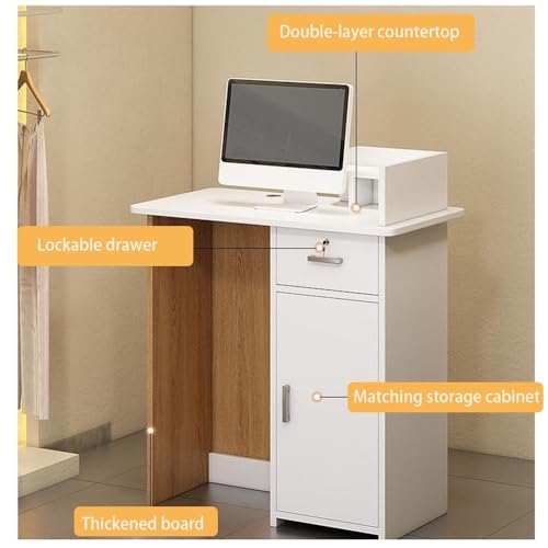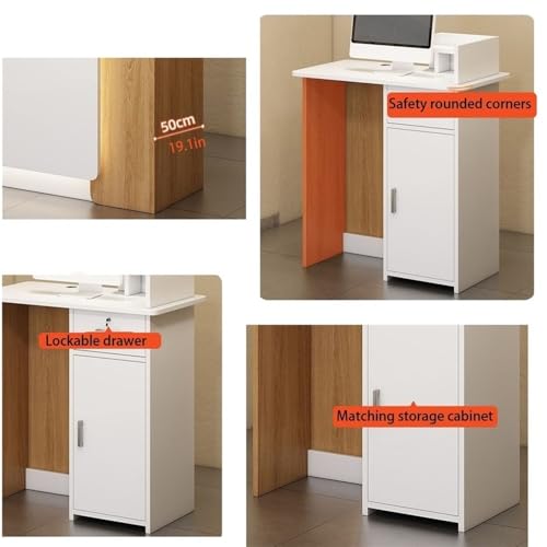 Receptionist Desk, Standing Checkout Counter, Retail Counter Lockable with Drawer, Reception Desk with Counter for Supermarket Convenience, Beauty Salon(White,Left)