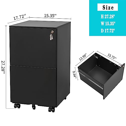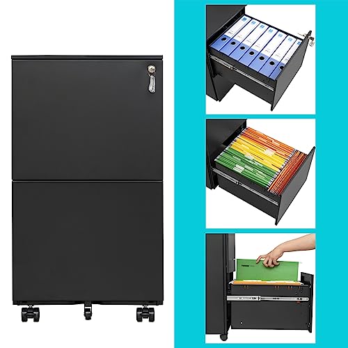 2 Drawer Mobile File Cabinet with Lock, Under Desk Metal Filing Cabinet, Steel Mobile Filing Cabinet on Anti-tilt Wheels for Legal/Letter Size (2 Drawer, White)