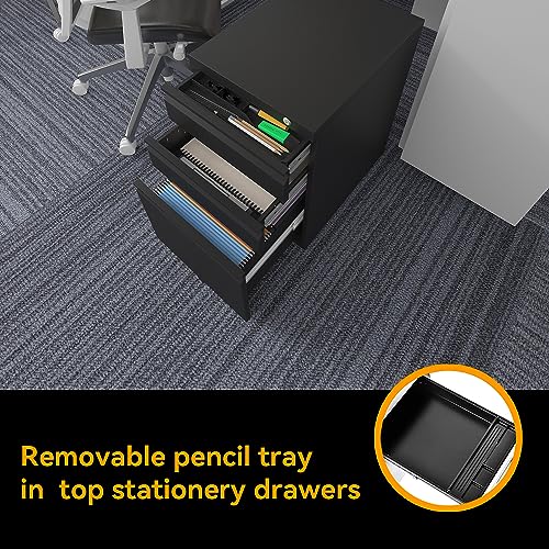 3 Drawer Storage Mobile File CABINETS Under Desk, for Legal & Letter File Anti-tilt Design with Lock Under Desk Office Drawers Fully Assembled