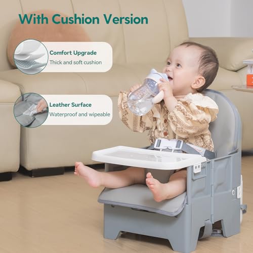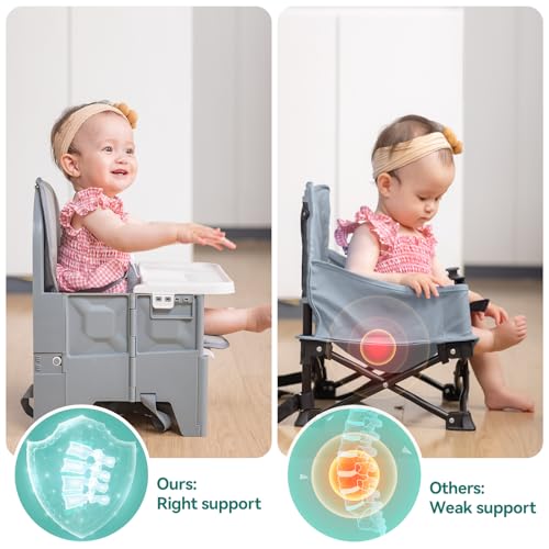 BABELIO Travel Booster Seat for Upright Posture, Compact Folding Floor Seat with PU Waterproof Cushion, Great for Baby, Dining Table, Camping, Beach, Mist Green