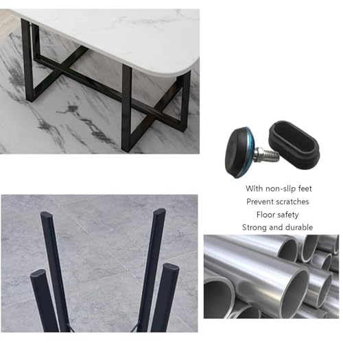 Marble Texture Round Dining Table Set Space Saving Round Dining Table Set 4 Seater Coffee Table Round Table for Dining Room and Kitchen with Recessed Rest, 8, Puleatherfabric