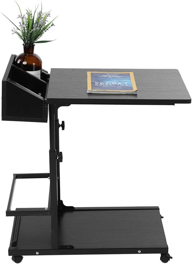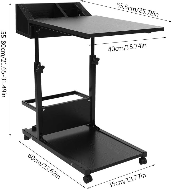Portable Laptop Desk with Wheels, Storage Drawer,Height for Bed Sofa, Solid Structure (Black)