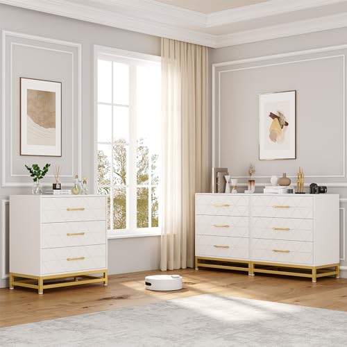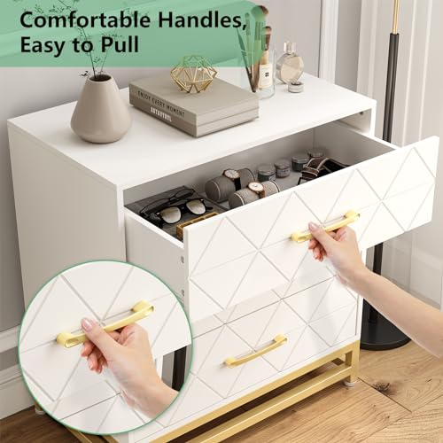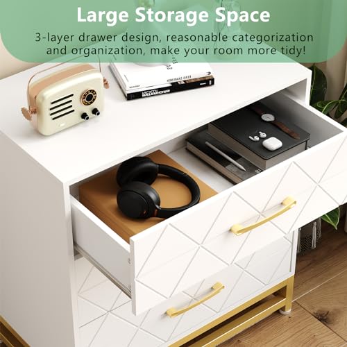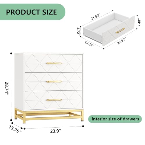 GAOMON 3 Drawer Dresser for Bedroom, Modern Wood Dressers Chest of Drawers with Storage, Wide Drawers Tall Nightstand Metal Handles, Wood Dressers, Pink