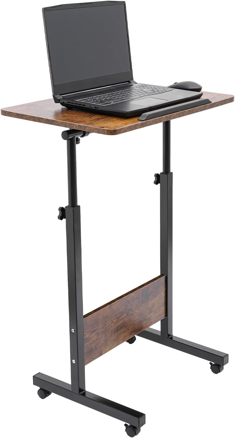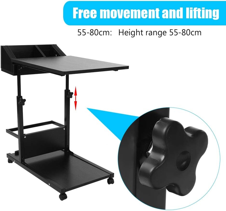 Lifting Computer Desk Standing Adjustable Height Mobile Desk with 4-Wheel,Portable Rolling Laptop Desk Foldable Workstation Bedside Table Couch Desk for Living Room Bedroom Home Office,Black B