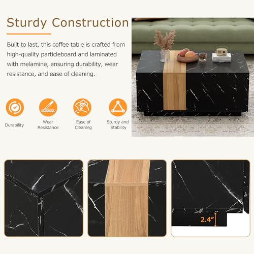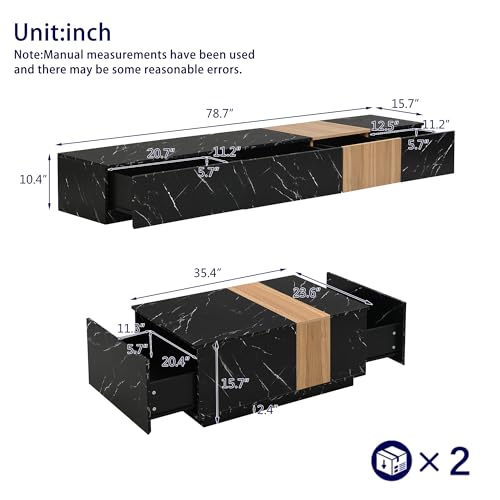 Merax 2 Piece Set, Faux Marble, Walnut Wood Grain Finish, Modern Entertainment TV Stand for Televisions up to 88'', Center Coffee Table with 2 Storage Drawers for Living Room, White