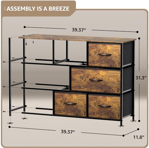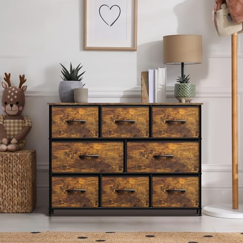 Sorbus Kids Dresser with 8 Drawers - Chest Organizer Unit with Steel Frame Wood Top & Handle, Fabric Bins for Clothes - Wide Furniture for Bedroom Hallway Kids Room Nursery & Closet