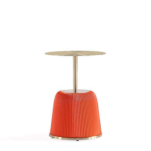 Manhattan Comfort Anderson Modern Coffee End Table 1.0 Upholstered in Leatherette with Ceramic Faux Gold Metal Tabletop-Set of 2, Green