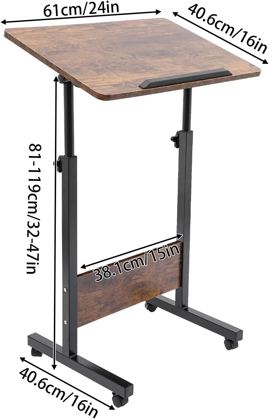 Standing Desk Adjustable Height, Mobile Stand Up Desk with Wheels, 24 x 16 inch Portable Rolling Desk Small Computer Desk, Portable Laptop Desk Standing Table