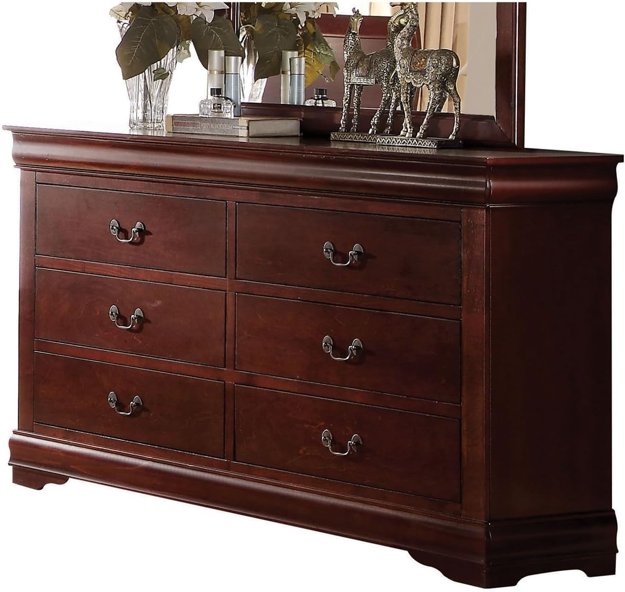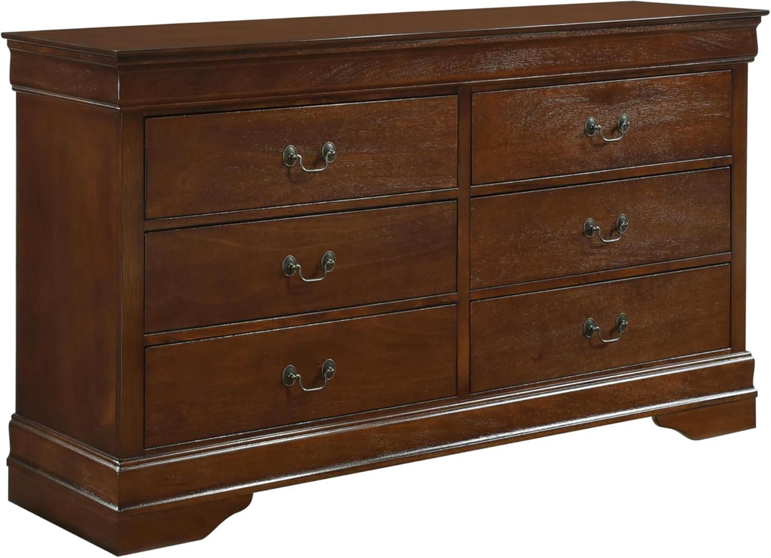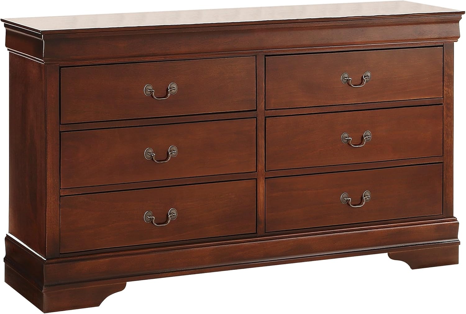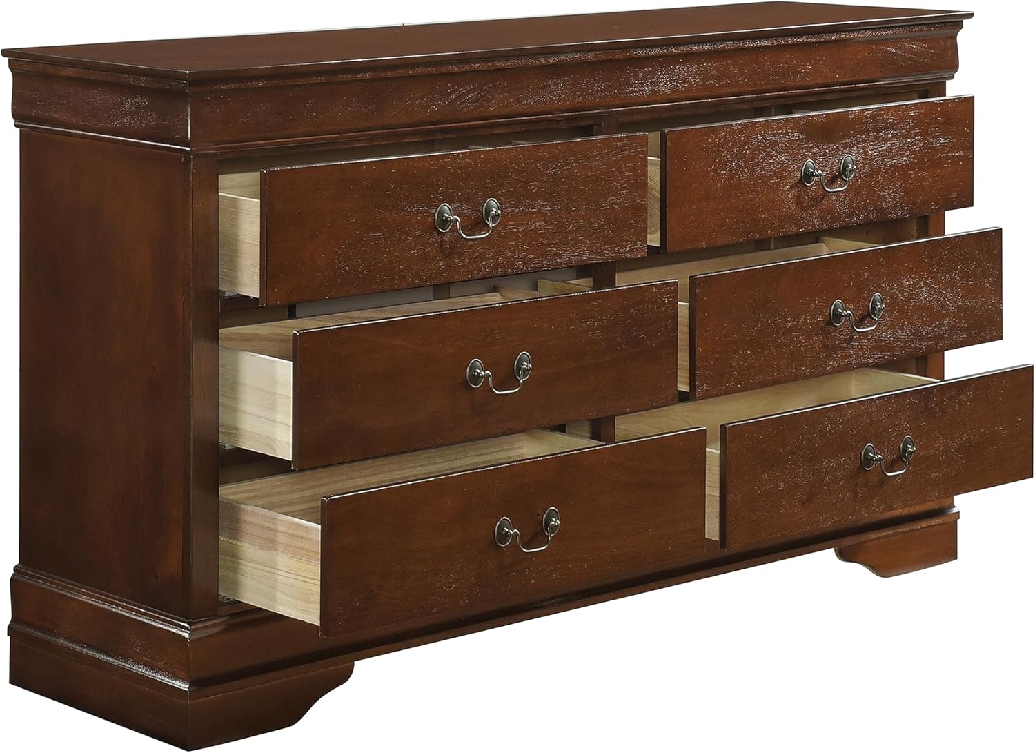 Traditional Design Brown Cherry Finish Dresser 1pc Louis Phillipe Style Classic Bedroom Furniture