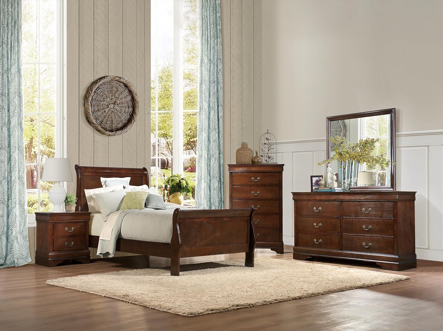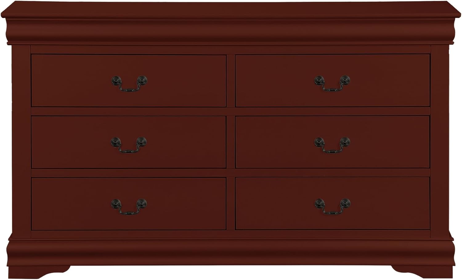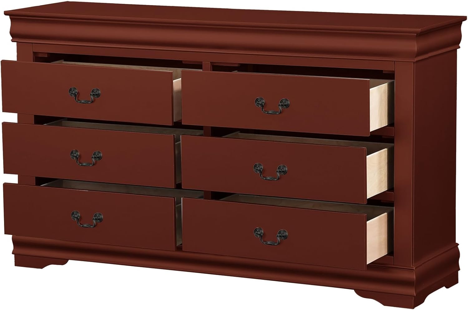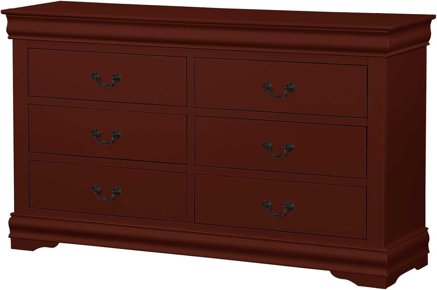 Traditional Design Brown Cherry Finish Dresser 1pc Louis Phillipe Style Classic Bedroom Furniture