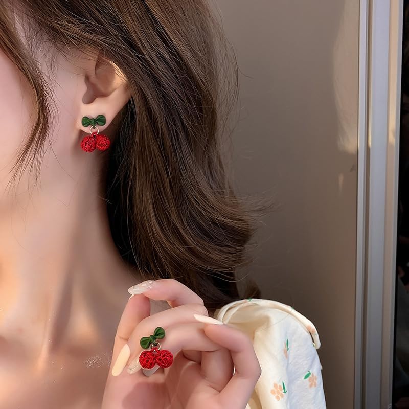 Cherry Earrings for Women Cute 3D Red Cherry Dangle Drop Summer Earring Funny Sweet Fruit Earrings Jewelry Summer Dresses Gift for Women (Yellow)
