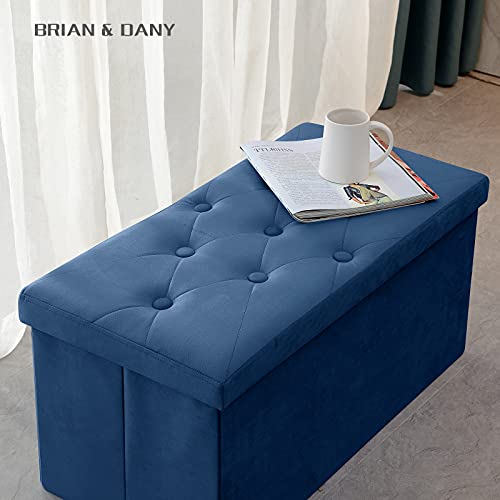 BRIAN & DANY Folding Storage Ottoman Bench, Velvet Ottoman with Storage for Living Room, Long Shoes Bench, Flannelette Footrest Benches Seat 30"x15"x15"