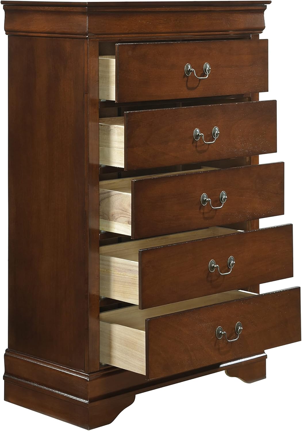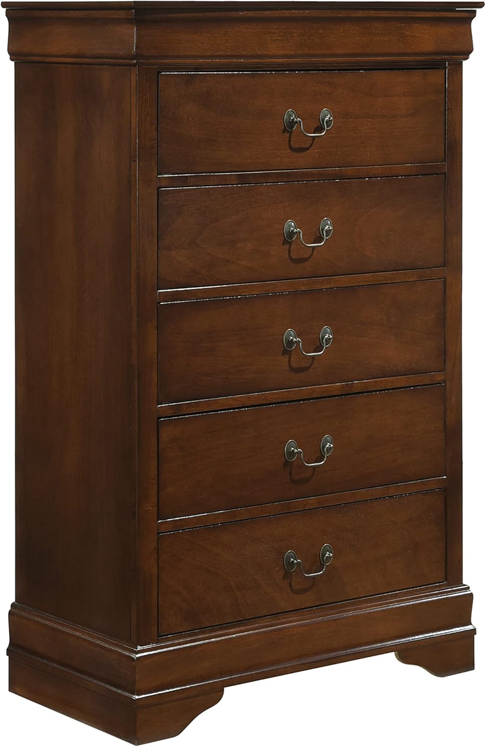 Traditional Design Bedroom Furniture 1pc Chest of 5X Drawers Brown Cherry Finish Antique Drop Handles Furniture