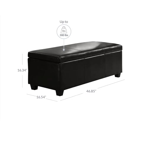 BELLEZE 47 Inch Storage Ottoman, Linen Storage Bench Bedroom Bench with Safety Close Hinge, Ottoman with Storage for Living Room, Entryway, Hallway, Foot Rest, Support 300lbs - Beige