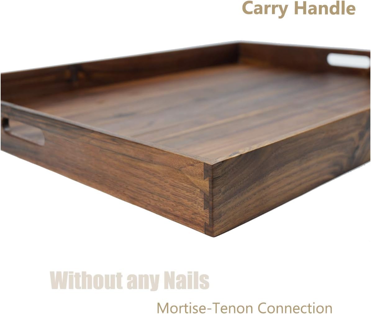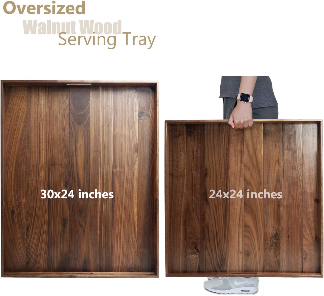 MAGIGO 30 x 24 Inches Extra Large Rectangle Black Walnut Wood Ottoman Tray with Handles, Serve Tea, Coffee Classic Wooden Decorative Serving Tray