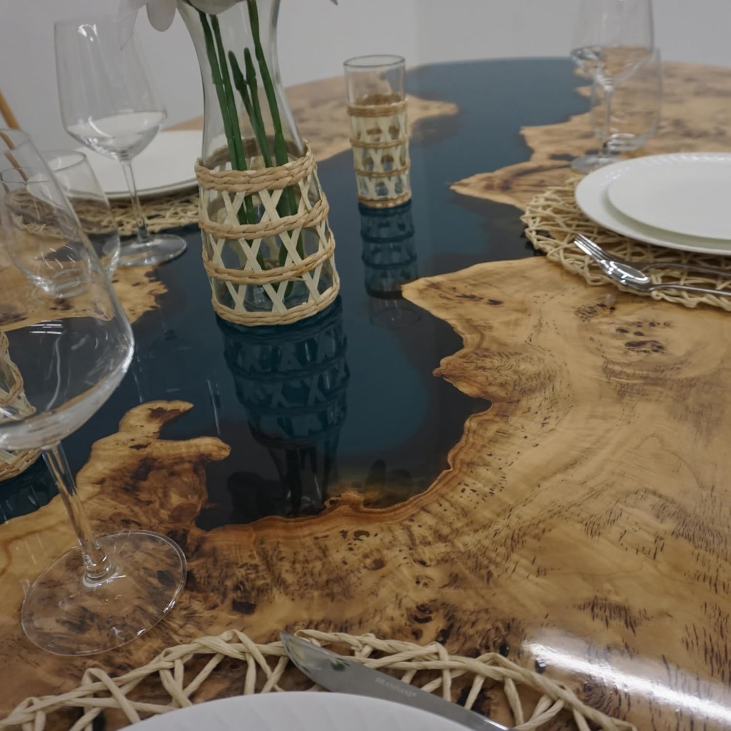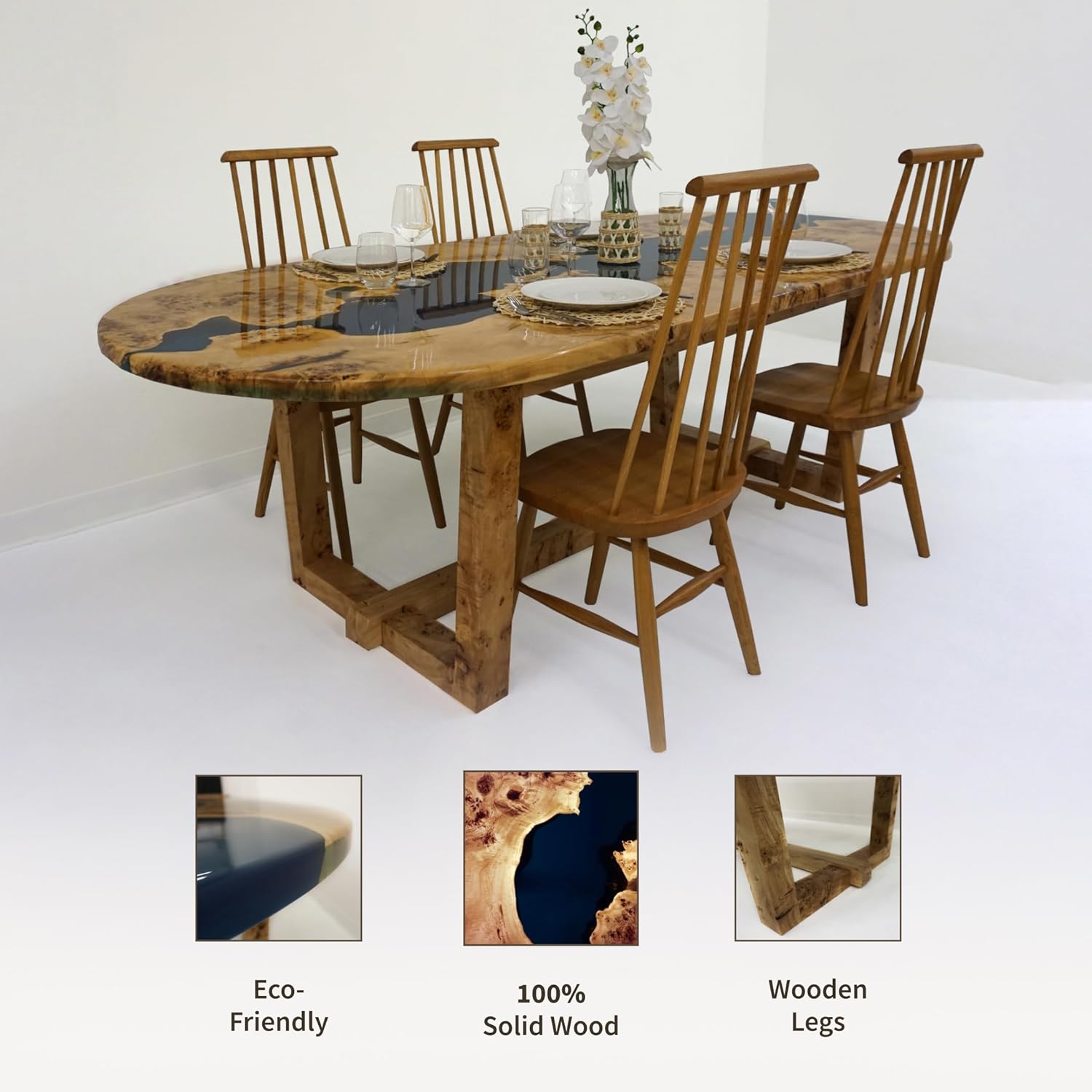 Oval Modern Epoxy Resin Table - Handcrafted Maple with Blue Accents - Conference Room Tables