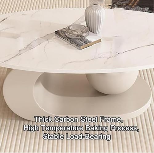 Modern Oval Stone Coffee Table,Metal Abstract Base Cocktail Table, Modern Minimalist Shape Slate Tabletop, Modern Simple Home Small Apartment Italian Living Room Coffee Table