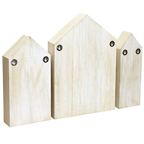 Ikee Design House-Shaped Wooden Shadow Cubby Box Display Shelf Organizer Storage Shadow Box for Mini Figures, Set of 3, Brown Color, 10 W x 2 1/4 D x 15 H in