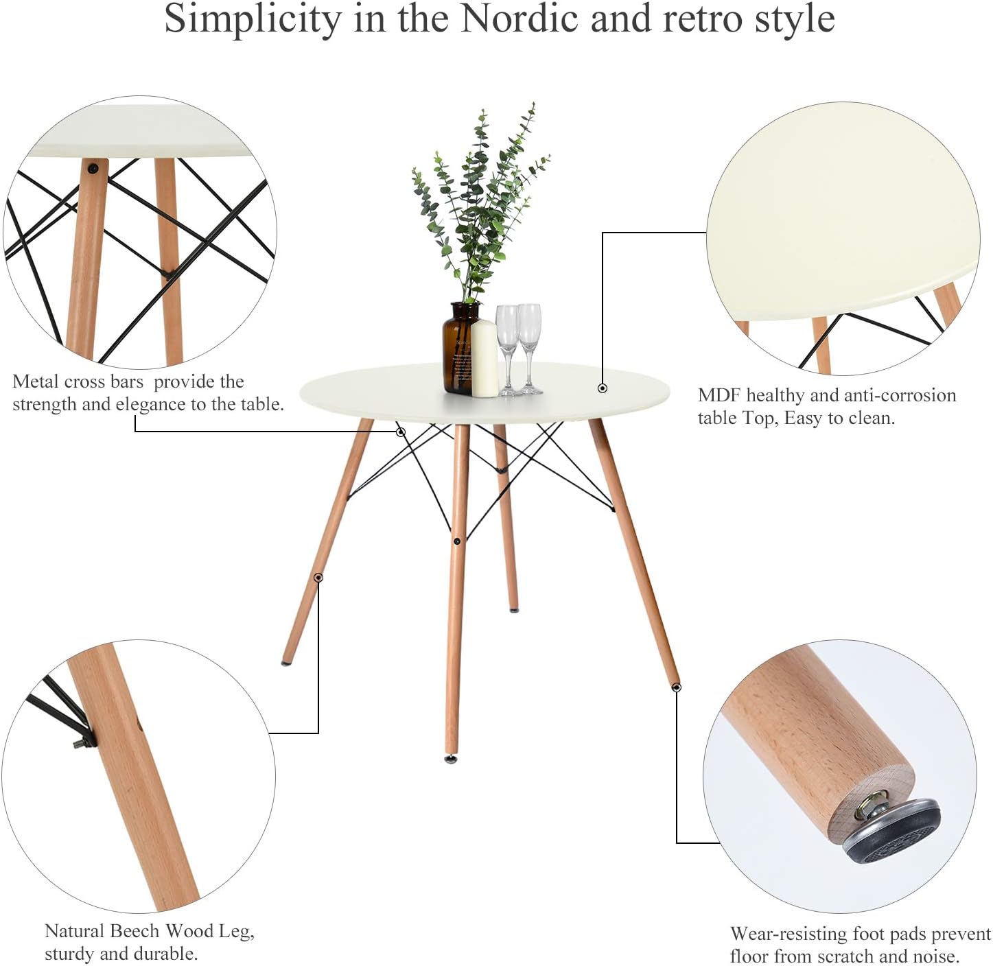 31.5'' Dinner Table Round Kitchen Dining Table Mid-Century Modern Coffee Tea Dinning Living Table for Small Spaces, Conference Table for 2-4P, White