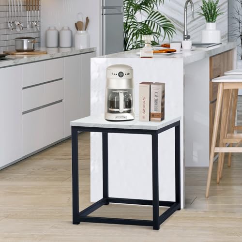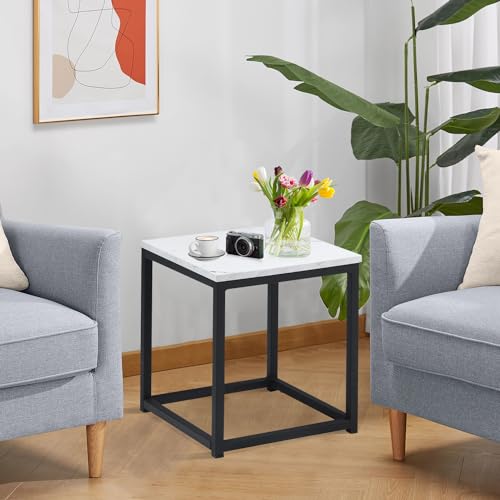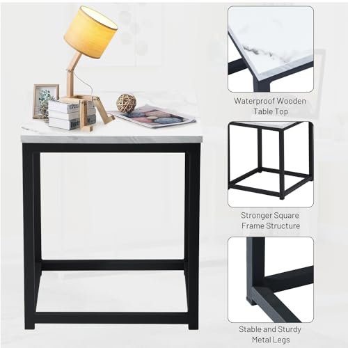 FurnitureR End Table, Modern Square Small Coffee Sofa Side Table with Metal Frame for Living Room, Bedroom, Office, Apartment, Set of 1, Marble White