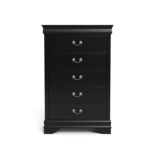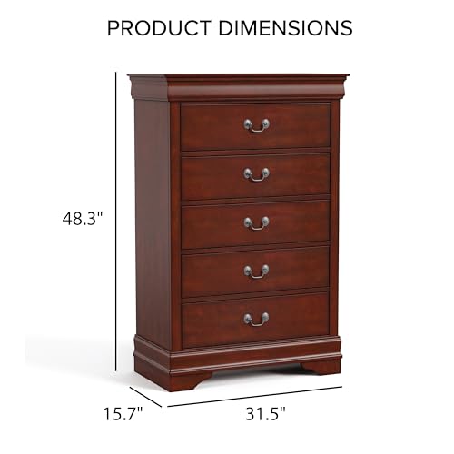 Furniture of America Arabella Traditional Wooden Chest Clothing Storage and Antique Nickle Handles, 5-Drawer Cabinet, Tall Dresser for Bedroom, Guest Room, Space Saving, Cherry